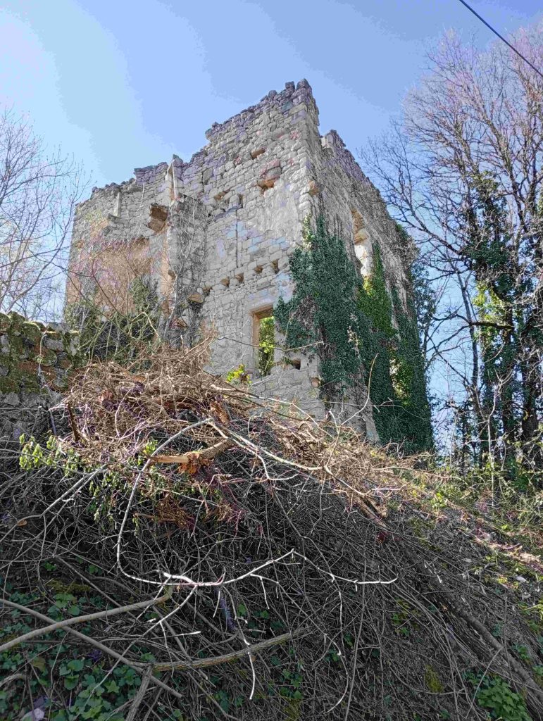 Nous déconseillons fortement de s’en approcher trop près, et le CAPA rappelle également que le château est dans une propriété privée. Toutefois, on le voit bien du GR qui passe en dessous.