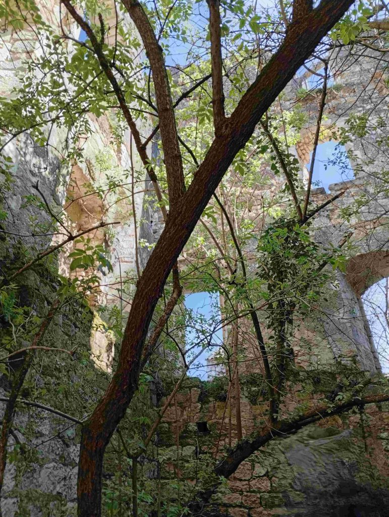 Gilles et Philippa nous ont dit qu’il y avait un four à pain mais actuellement inaccessible à cause des murs de ronces et d’arbustes intraversables.