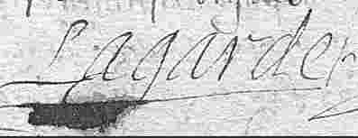 1543- Signature de Gabriel de Bonfantan de Lagarde lors de son mariage avec Jordine Agasse (seigneurs de St Urcisse)