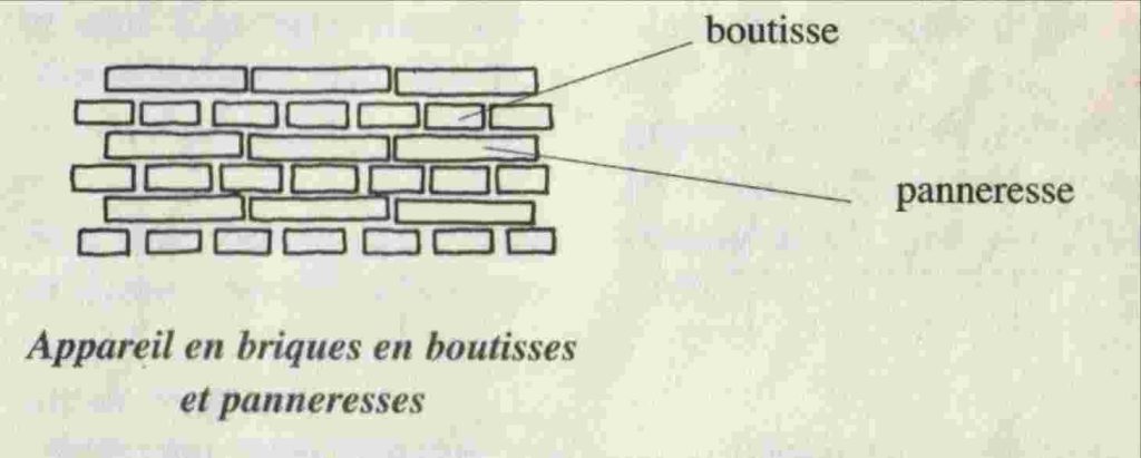 Boutisse : brique dont la petite face est visible en parement et dont la plus longue est incluse dans l’épaisseur de la maçonnerie.