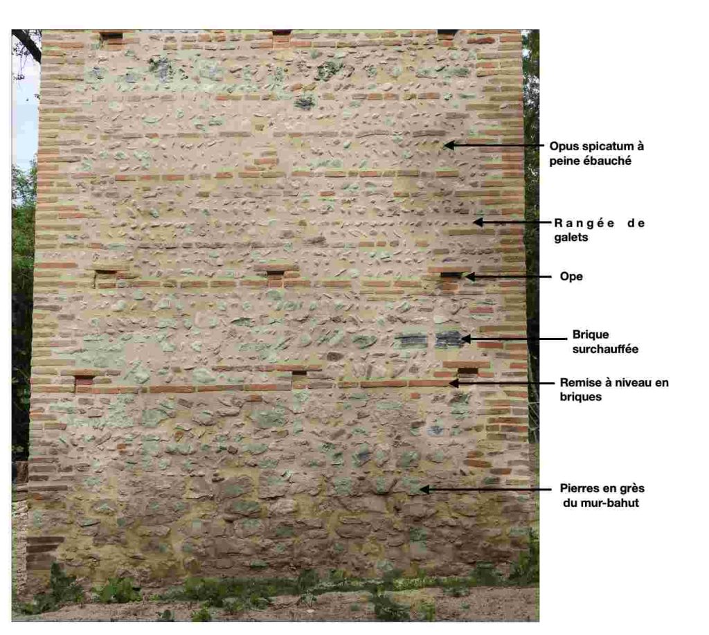- de nombreuses rangées de galets. On observe aussi quelques opus spicatum peu marqués.