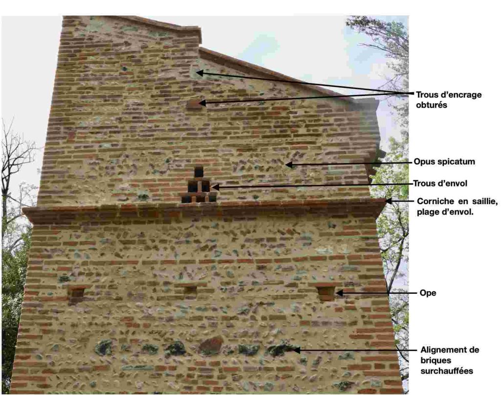- de plusieurs remises à niveau du bâti par des assises intermédiaires en briques.