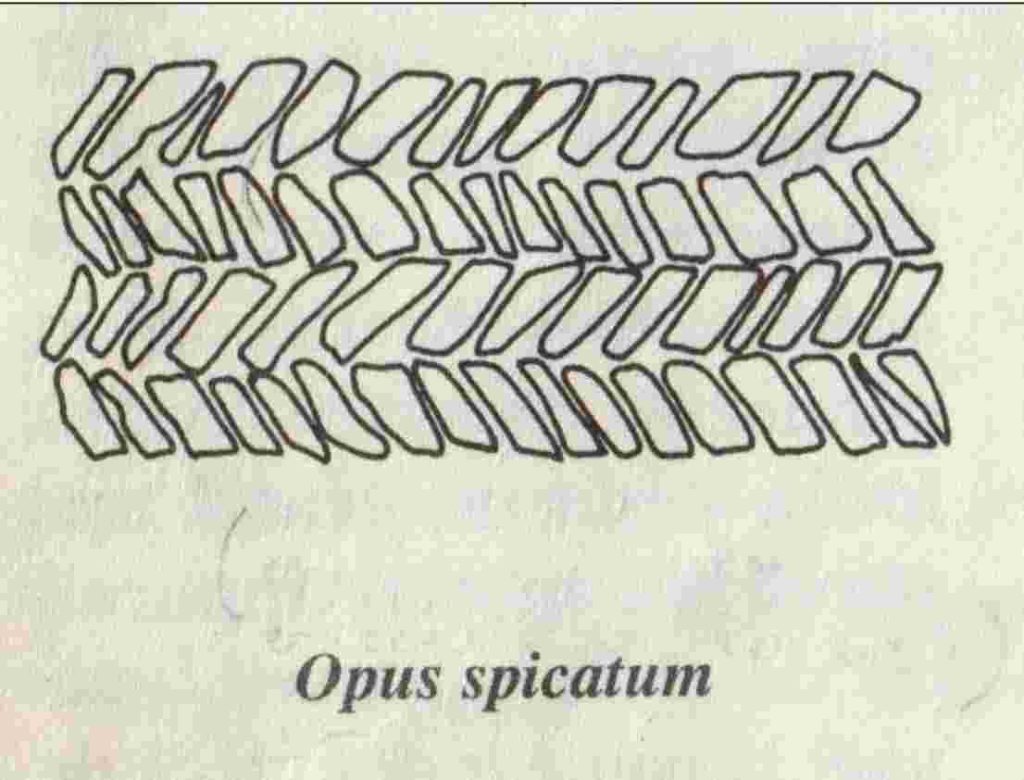 Opus spicatum : galets disposés en épi de blé ou en arêtes de poisson.