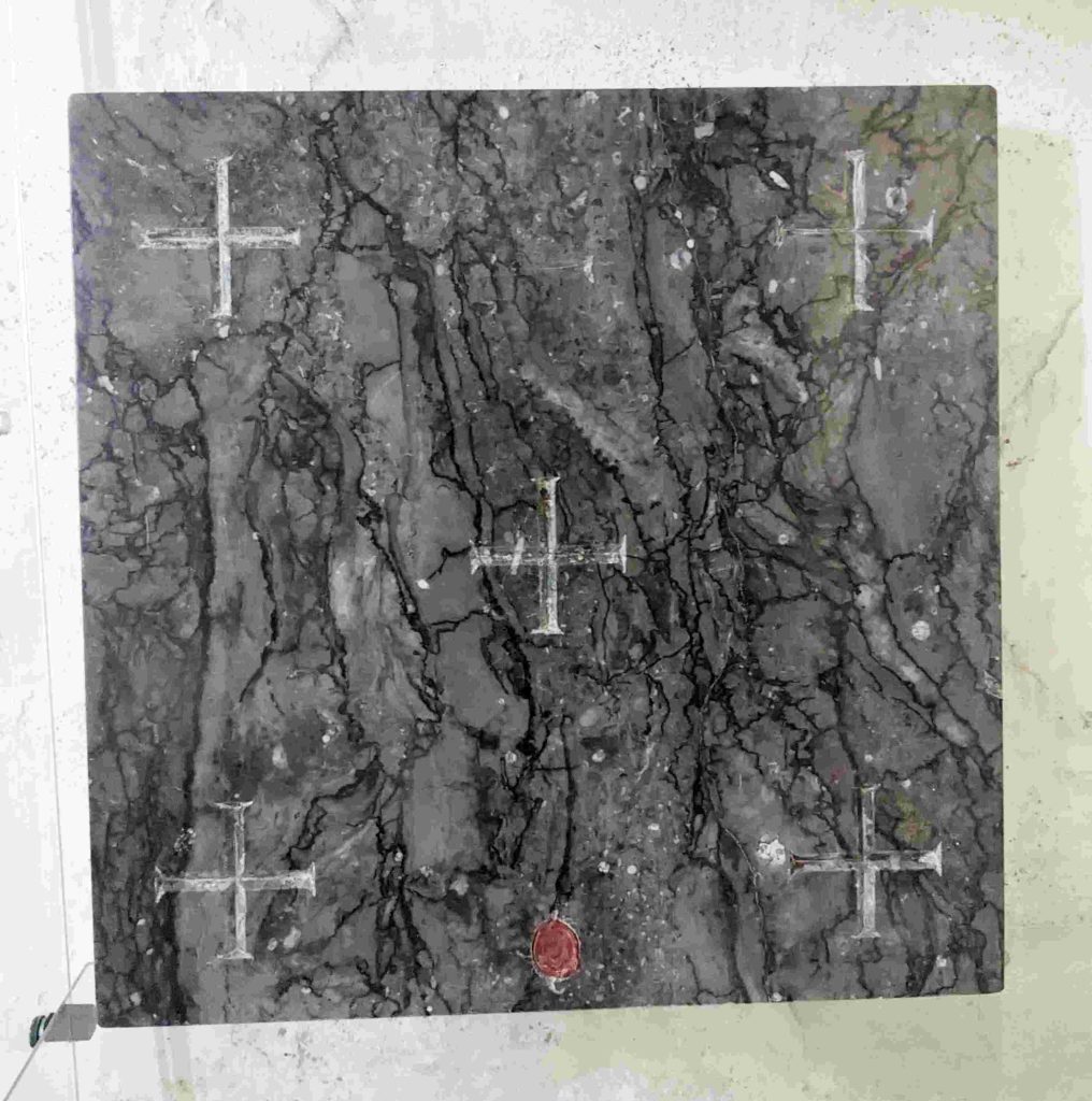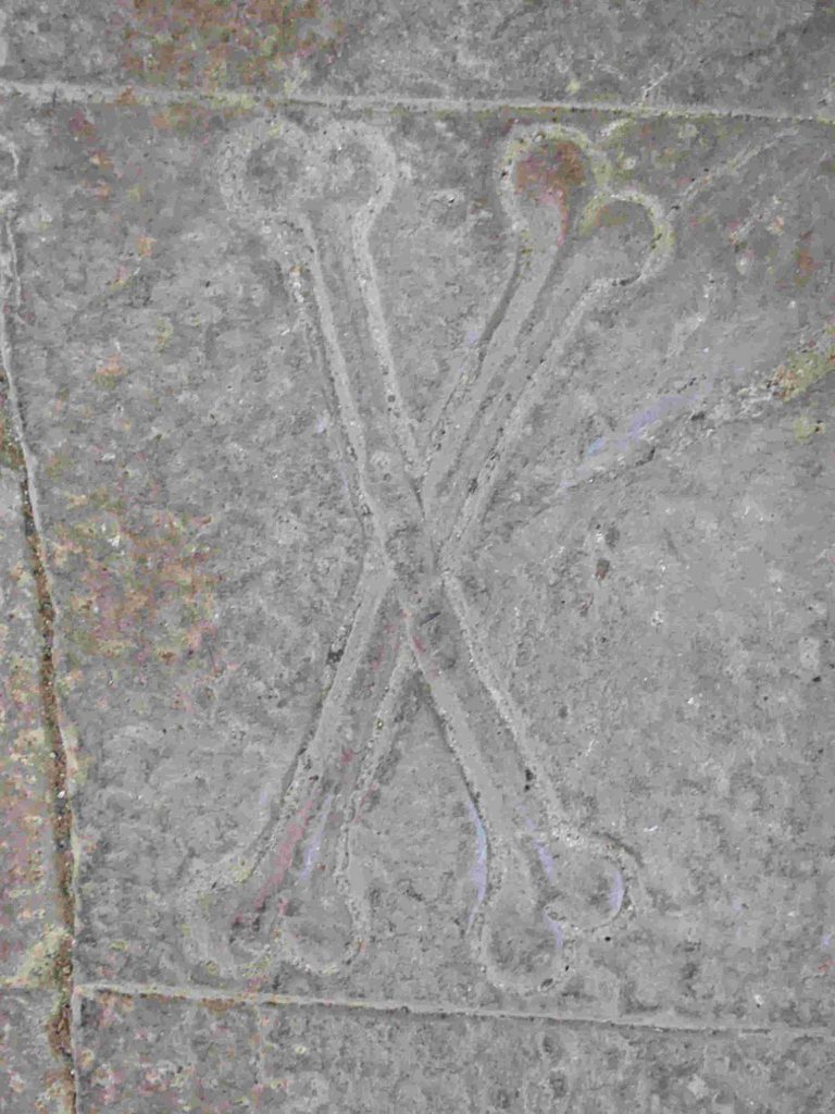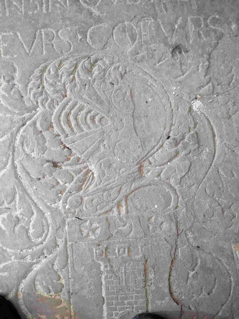 Les murs extérieurs de l’église étaient ceinturés par une litre funéraire dont on peut encore observer quelques fragments d’enduit.