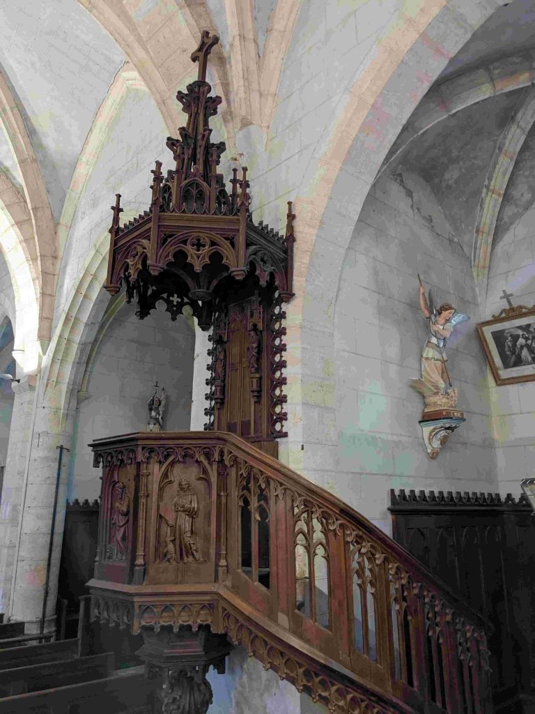 La porte d’entrée de l’église date de 1617. Le clocher est imposant, bâti en pierre calcaire de taille avec porche sur croisée d’ogives et couvert d’une flèche en ardoise. La nef est couverte d’une voûte gothique sur arêtes.