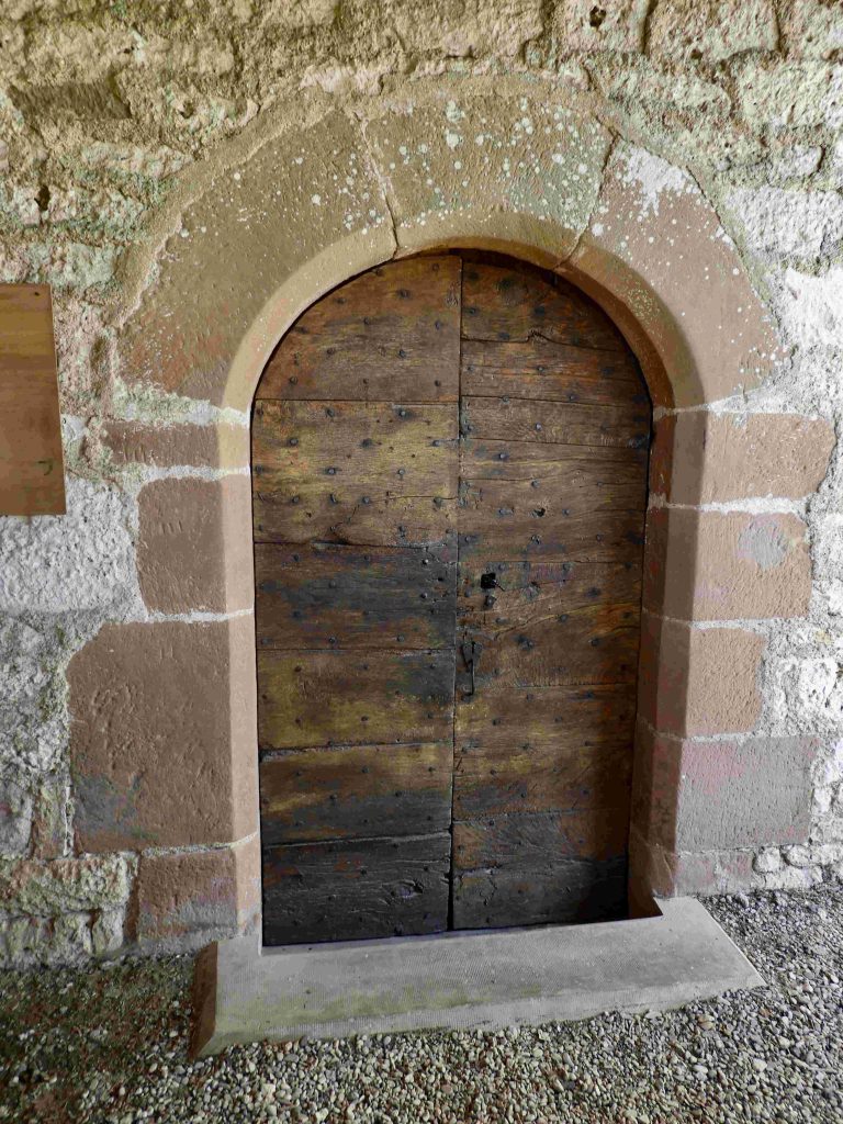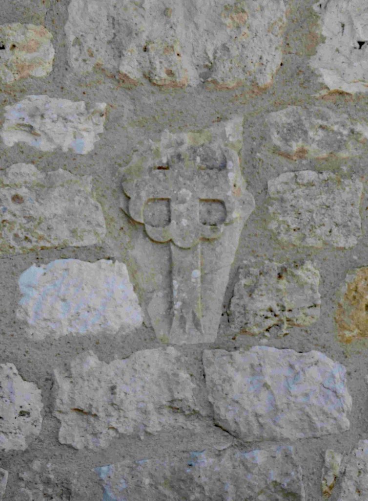 Toujours sur la façade Sud on peut voir un enfeu, niche funéraire pour insérer un cercueil, pris dans l’épaisseur du mur. Un deuxième enfeu qui était aussi dans ce mur a été déplacé à quelques mètres à l’écart du bâtiment et remplacé par une chapelle ajoutée, comme les contreforts, au XVIIème siècle, ultérieurement à la construction intiale.