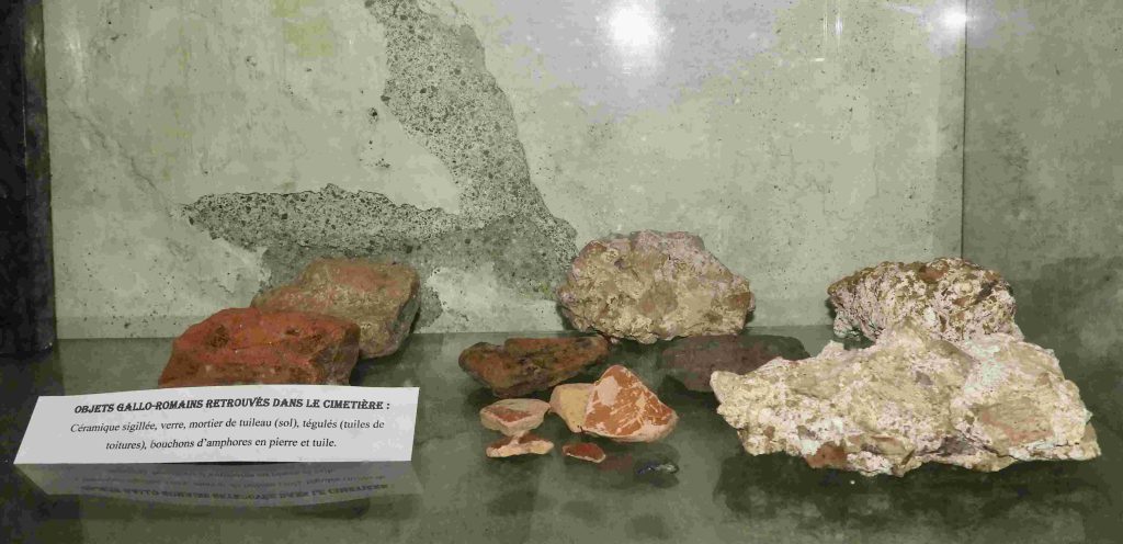 Une église primitive bâtie sur l’emplacement d’un temple romain, fut détruite par les Anglais. Au début du XVème siècle l’église actuelle fut construite sur le même emplacement, proche de la voie romaine évoquée précédemment. Outre les vestiges du temple romain dont un reste de sol, des tegulae (tuiles romaines à rebords), une obole de 820 a été mise au jour par les fouilles ainsi qu’une partie d’un sarcophage du Xème siècle.
